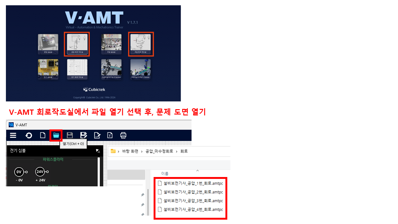 V-AMT 내 회로작도실에서 사용하실 수 있는 설비보전기사 공개 문제 예제 파일을 공유드립니다.